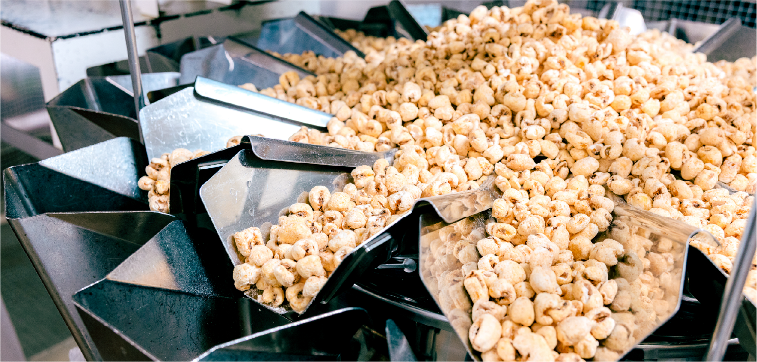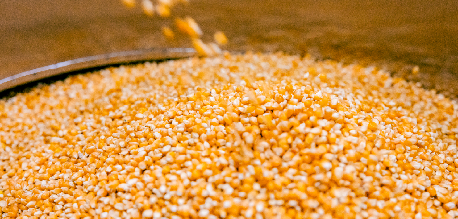 菊屋が主に使用している原材料は、トウモロコシ、えんどう豆、小麦、国内産の米などです。